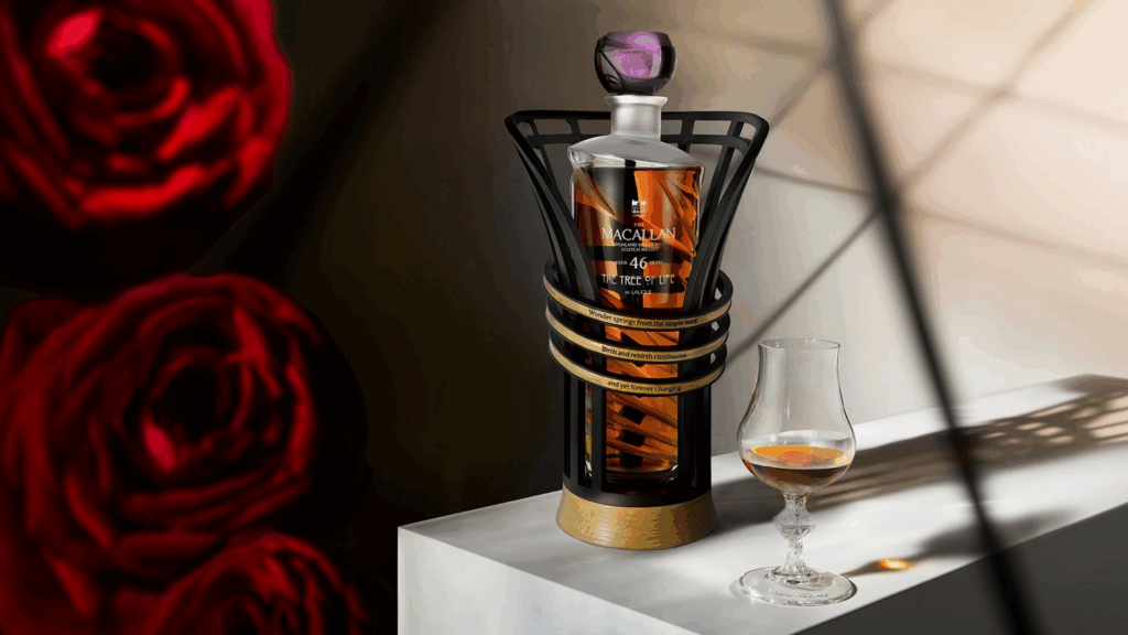 The Tree of Life, un single malt de 46 años, representa los legados entrelazados de The Macallan y Mackintosh, ambos profundamente conectados con la naturaleza.