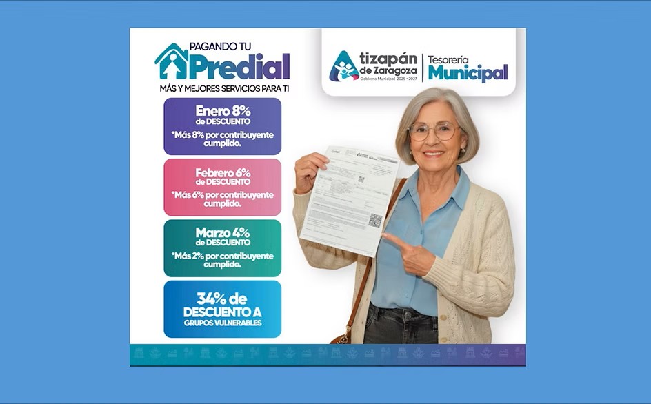 Asimismo, el Ayuntamiento mantiene un esquema de apoyo para sectores vulnerables, quienes podrán acceder a una reducción del 34 por ciento en el pago del predial, siempre que cumplan con los requisitos establecidos.