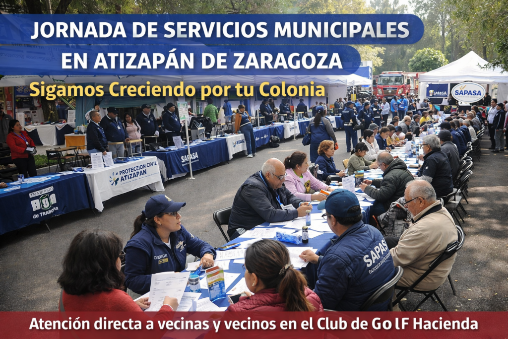 Con el objetivo de fortalecer la cercanía entre el gobierno municipal y la población, el Ayuntamiento de Atizapán de Zaragoza puso en marcha la primera jornada del año del programa Sigamos Creciendo por tu Colonia, realizada en el Club de Golf Hacienda, donde se concentraron diversos servicios públicos en un solo punto para beneficio de las y los vecinos de la zona.